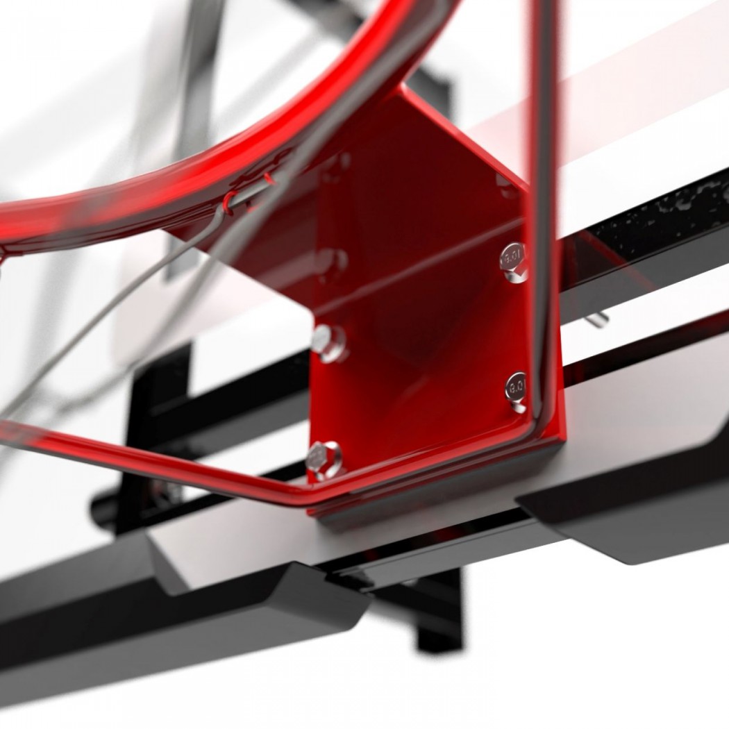 Щит изготовлен из прочного поликарбоната, который отличается высокой устойчивостью к ударам и погодным условиям. Он не мутнеет, не выцветает и сохраняет аккуратный внешний вид даже при активной эксплуатации. Толщина конструкции 2 мм, что обеспечивает надежность и долговечность, а качественная сборка гарантирует устойчивость при бросках и отскоках мяча.