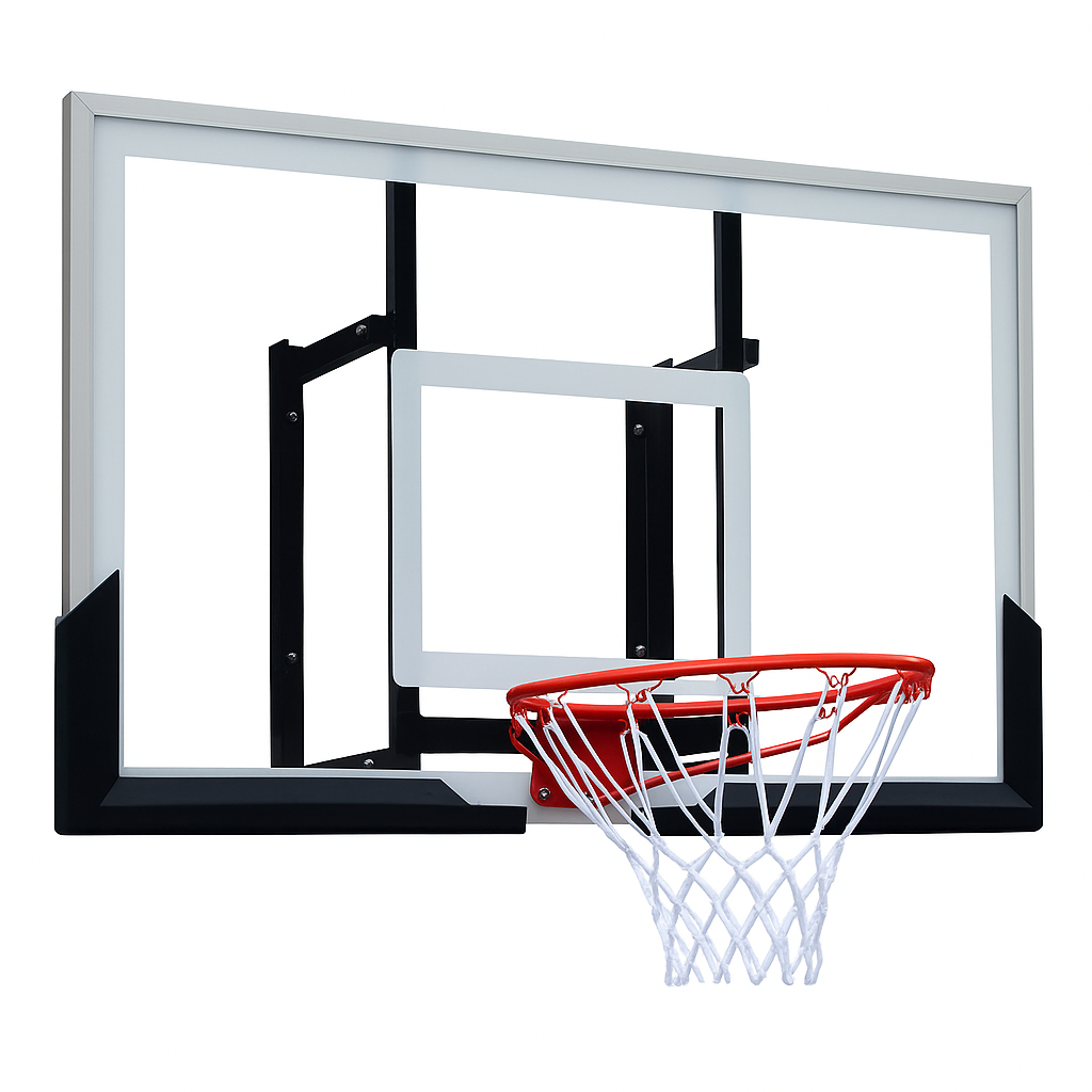Щит изготовлен из прочного поликарбоната, который отличается высокой устойчивостью к ударам и погодным условиям. Он не мутнеет, не выцветает и сохраняет аккуратный внешний вид даже при активной эксплуатации. Толщина конструкции 2,5 мм, что обеспечивает надежность и долговечность, а качественная сборка гарантирует устойчивость при бросках и отскоках мяча.