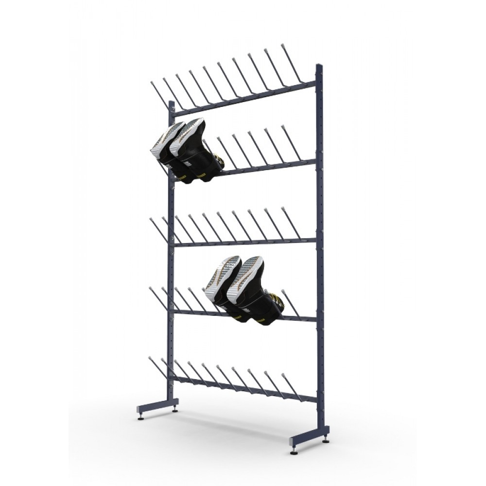 Вместительный стеллаж предназначен для хранения любой спортивной и спец. обуви. Оборудование данного типа выполнено из усиленных стальных профилей и круглых труб. Стеллажи серии "Эконом" могут быть выполнены в одностороннем или в двухстороннем варианте. В стеллажах данной модели предусмотрено индивидуальное место для ботинка.Конструкция стеллажа сборно-разборная и экономить затраты при транспортировке.