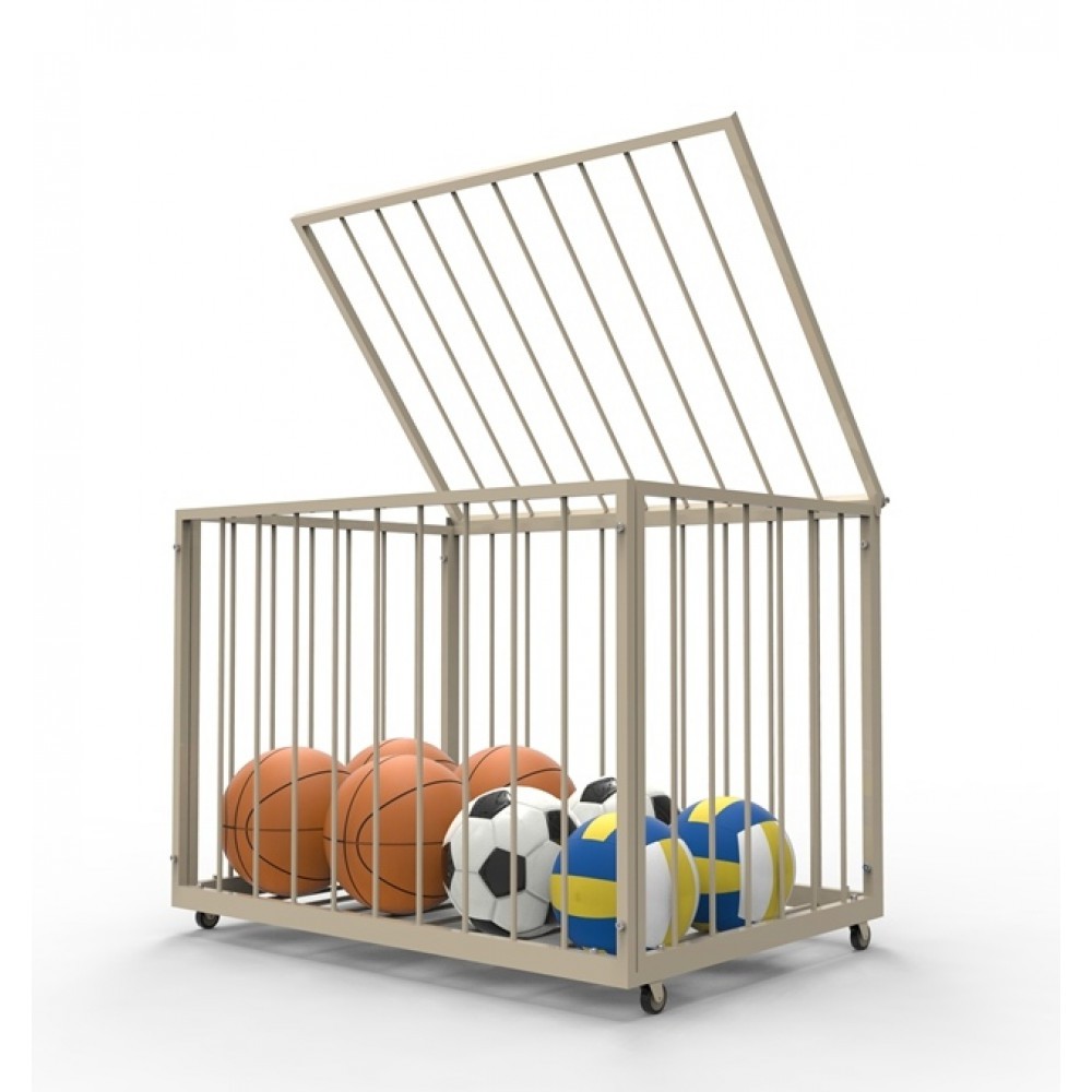 Контейнер-корзина предназначена для хранения и перевозки различных мячей (волейбольных, футбольных, баскетбольных и др.). Каркас корзины изготавливается из стальных профильных труб и прутков, диаметром 10 мм. Для удобства перемещения корзина снабжена роликовыми опорами (без стопорной системы).
