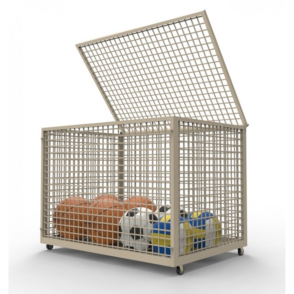 Контейнер-корзина предназначена для хранения и перевозки различных мячей (волейбольных, футбольных, баскетбольных и др.). Каркас корзины изготавливается из стальных профильных труб и электросварной сетки с ячейками 50*50 мм. Для удобства перемещения корзина снабжена роликовыми опорами (без стопорной системы).