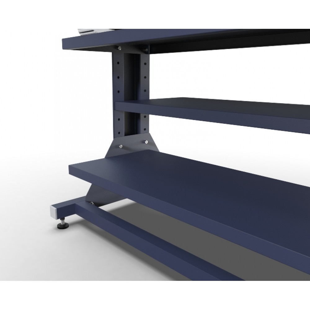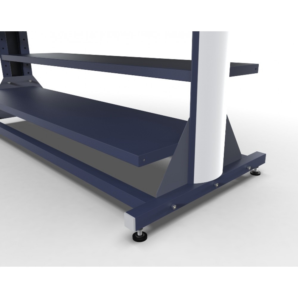 В боковых стойках стеллажа установлена декоративная пластиковая панель, толщиной 2 мм. Данная панель предназначена для нанесения индивидуального дизайна или логотипа. С лицевой стороны панель закрывает элементы крепления. В базовой комплектации, стеллаж установлен на винтовые опоры. По желанию Заказчика стеллажи можно укомплектовать колесными опорами (перемещение стеллажей на роликовых опорах возможно только без установленного на него оборудования) или поставить на рельсовую систему, также, дополнительно, возможно установить панорамную пластиковую панелью размерам В.2250 * Ш.670 мм., с изображением и ручку для удобного перемещения. Оборудование окрашивается полимерным порошковым покрытием с высокими защитными и декоративными свойствами. По желанию Заказчика, возможно, покрасить стеллаж в любой цвет по палитре RAL. Так же возможно изготовление стеллажа по индивидуальным размерам Заказчика.