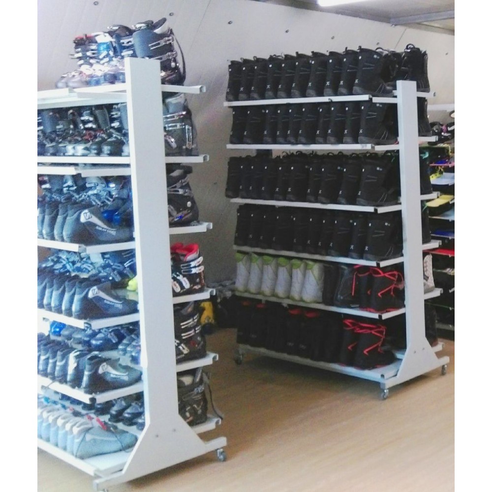 Стеллажи серии Премиум предназначены для хранения любого типа обуви, горнолыжных и сноубордических ботинок, а также для хранения сапог и спец. обуви. Оборудование данного типа выполнено из усиленных стальных профилей и листового металла. Стеллажи данной серии могут быть выполнены в одностороннем или в двухстороннем варианте.