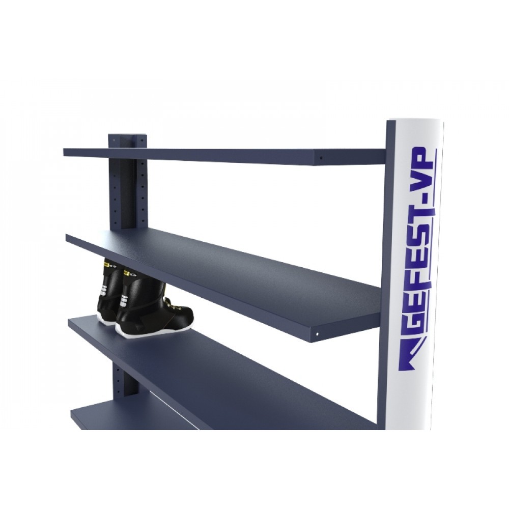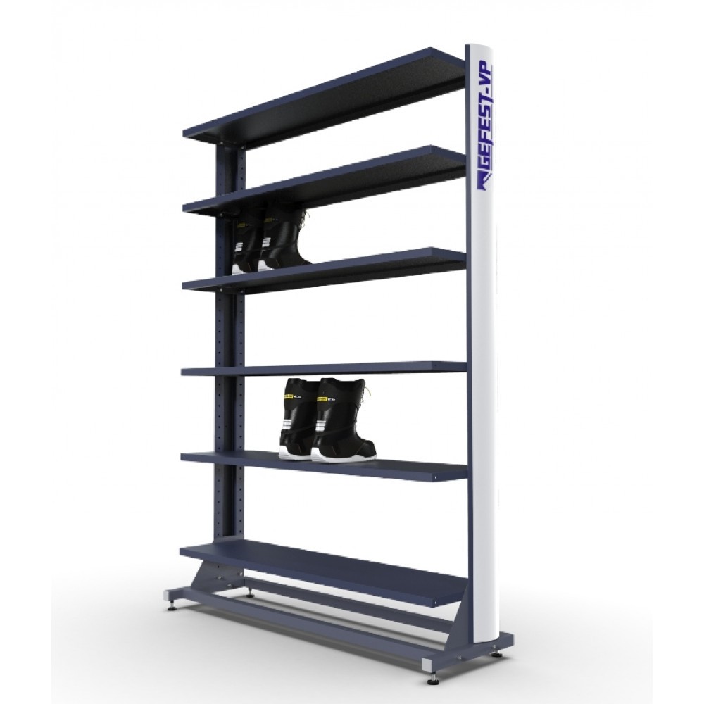 Стеллажи серии Премиум предназначены для хранения любого типа обуви, горнолыжных и сноубордических ботинок, а также для хранения сапог и спец. обуви. Оборудование данного типа выполнено из усиленных стальных профилей и листового металла. Стеллажи данной серии могут быть выполнены в одностороннем или в двухстороннем варианте.
