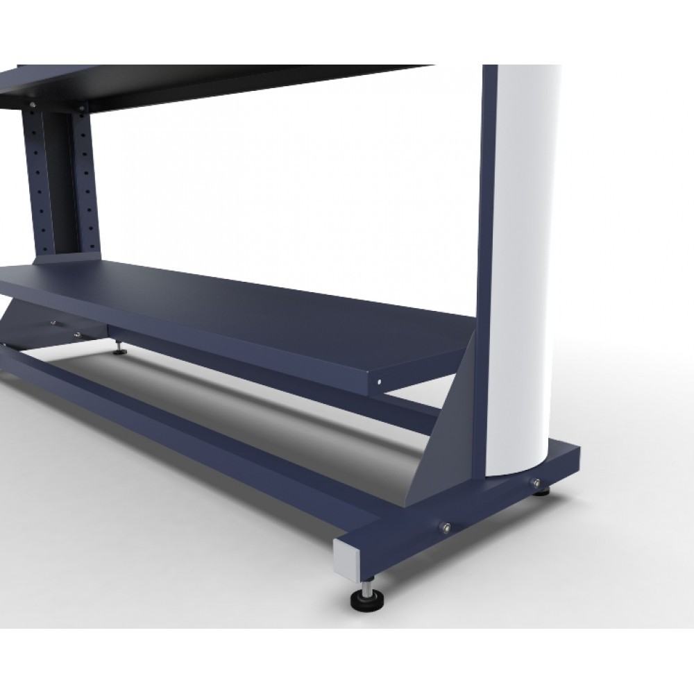 В боковых стойках стеллажа установлена декоративная пластиковая панель, толщиной 2 мм. Данная панель предназначена для нанесения индивидуального дизайна или логотипа. С лицевой стороны панель закрывает элементы крепления. В базовой комплектации, стеллаж установлен на винтовые опоры. По желанию Заказчика стеллажи можно укомплектовать колесными опорами или поставить на рельсовую систему, также, дополнительно, возможно установить панорамную пластиковую панелью размерам В.2250 * Ш.670 мм., с изображением и ручку для удобного перемещения. Оборудование окрашивается полимерным порошковым покрытием с высокими защитными и декоративными свойствами. По желанию Заказчика, возможно, покрасить стеллаж в любой цвет по палитре RAL. Так же возможно изготовление стеллажа по индивидуальным размерам Заказчика.
