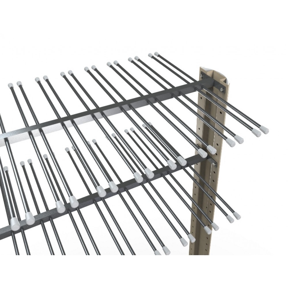 Размещение в данном стеллаже двухстороннее, хранение лыжных палок за «лапку». Благодаря такому типу хранения, инвентарь легко устанавливается и вынимается. Конструкция стеллажа сборно-разборная, что позволяет значительно экономить затраты при транспортировке.