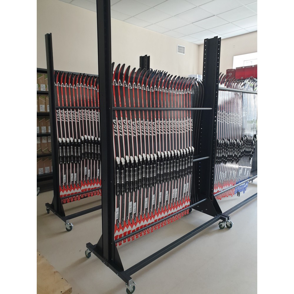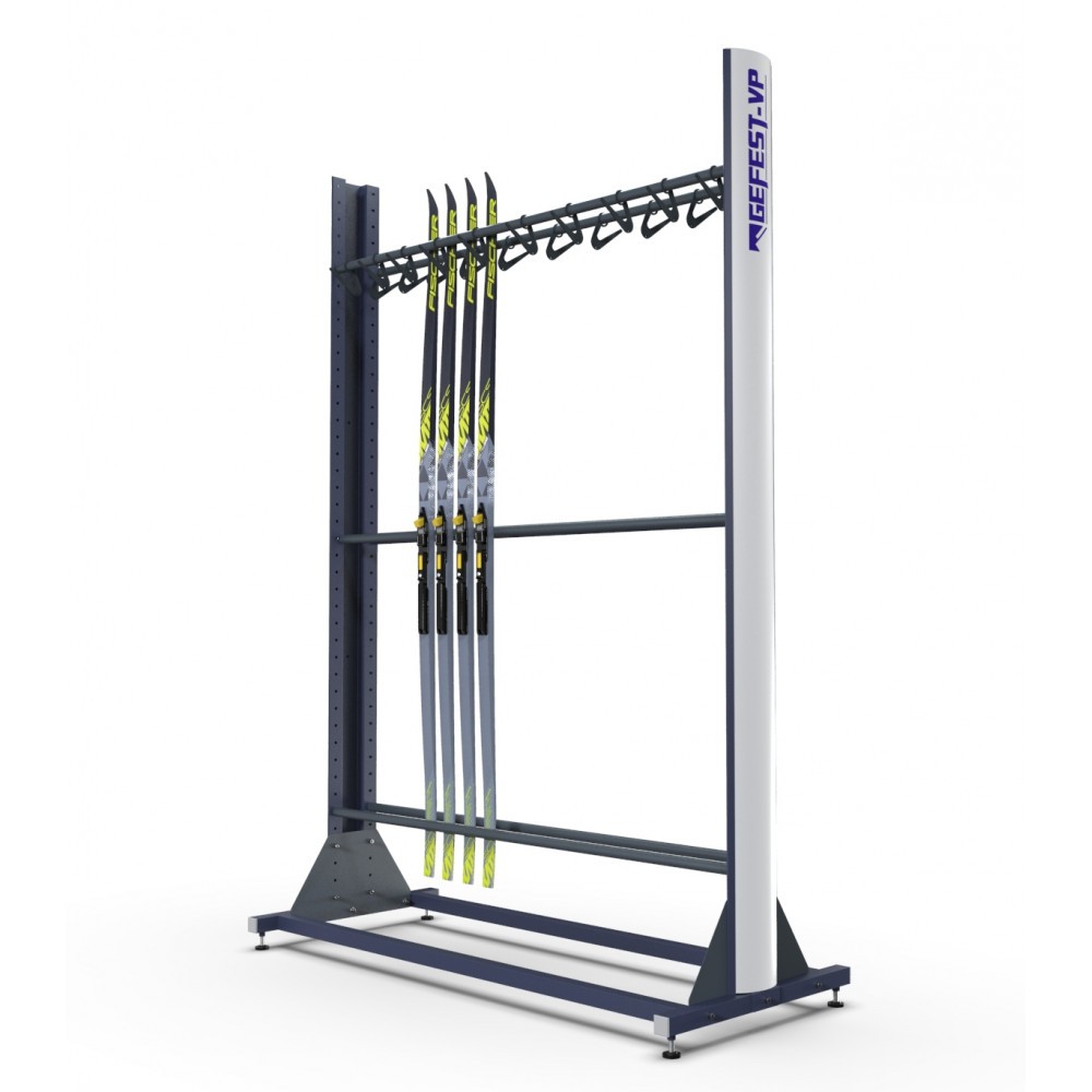 Стеллаж предназначен для хранения беговых лыж разной длины с креплениями. Оборудование данного типа выполнено из усиленных стальных профилей и листового металла. Стеллажи серии Премиум изготавливаются в двухстороннем варианте.