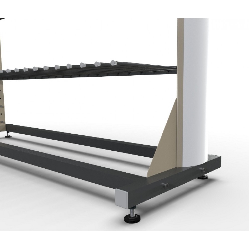 В базовой комплектации, стеллаж установлен на винтовые опоры. По желанию Заказчика стеллажи можно укомплектовать колесными опорами или поставить на рельсовую систему, также возможно укомплектовать панорамной пластиковой панелью размерами В.2250 * Ш.670 мм., с изображением и ручкой для удобного перемещения.