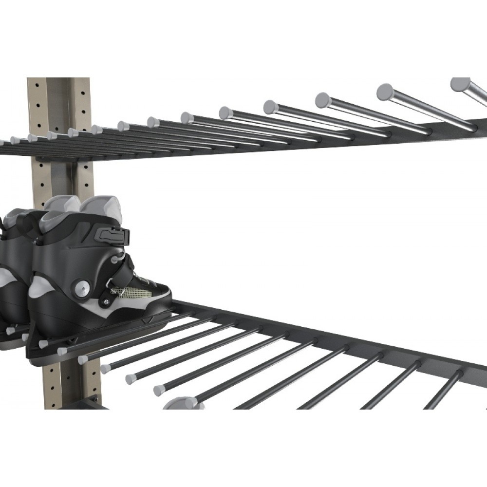 Конструкция стеллажа для коньков максимально проста в сборке, прочна и функциональна в использовании. Стеллажи имеют большую вместимость благодаря чему эффективно экономят пространство, в стеллаже возможно размещение коньков по видам, размерам и другим параметрам.