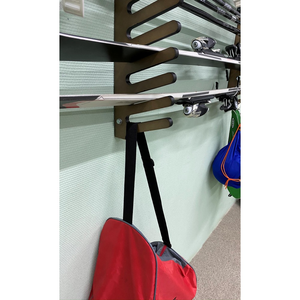 Вешалка SE-7/18 предназначена для хранения горных лыж различной длины и конфигурации, так же возможно хранение как беговых лыж разных типов и размеров, так и сноубордов и лыжных палок. Конструктив данной вешалки предусматривает одностороннее размещение снаряжения. Лыжный инвентарь устанавливается в индивидуальные ячейки. Вешалка крепится к стене, тем самым идеально подходит для использования в помещениях с ограниченным пространством. Данные вешалки идеально подойдут для использования в небольших лыжных комнатах, а также, для домашнего настенного хранения инвентаря.