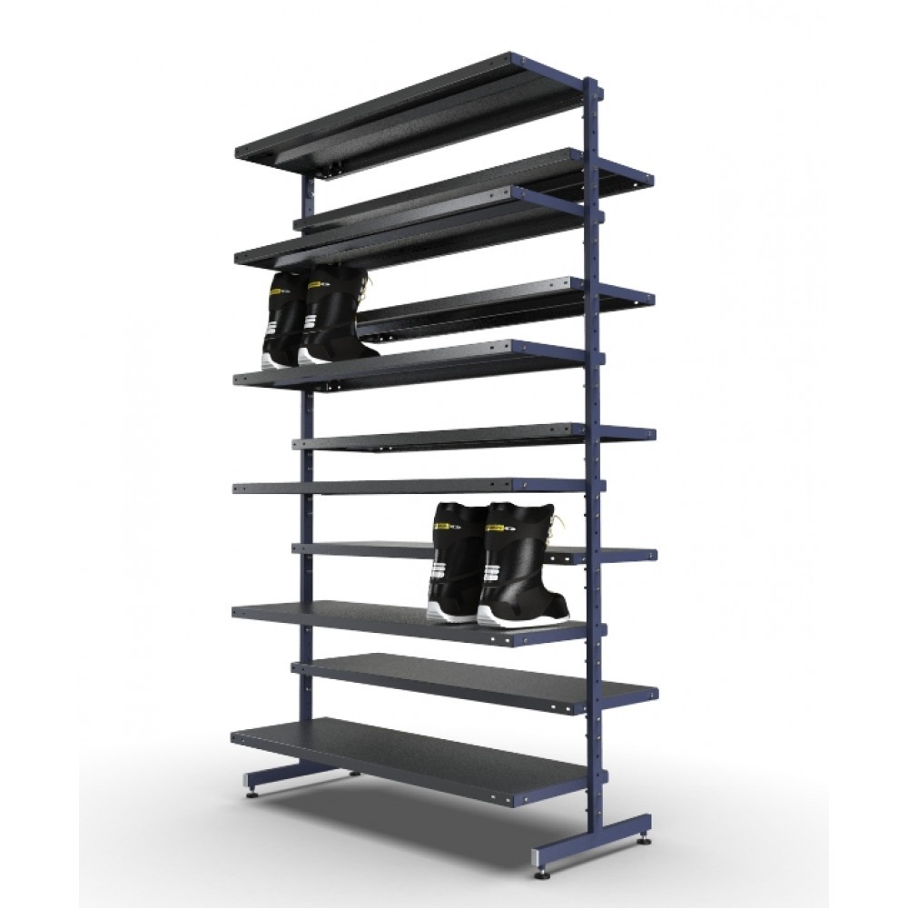 Функциональный стеллаж предназначен для хранения любой обуви в том числе любой спортивной обуви с высотой голенища до 380мм. Оборудование данного типа выполнено из усиленных стальных профилей и листового металла. Стеллажи серии "Стандарт" изготавливаются в одностороннем и в двухстороннем вариантах.