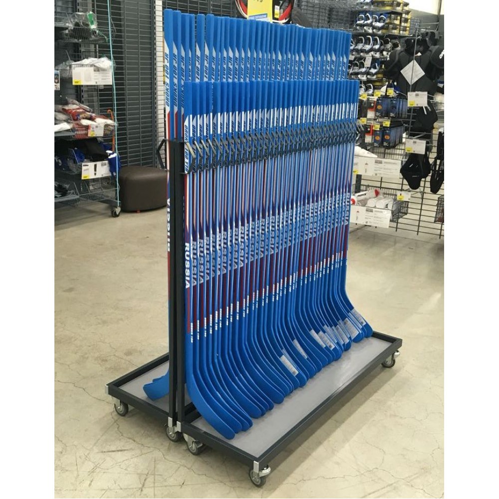 Оборудование данного типа находит свое применение, как в магазинах хоккейного инвентаря, профессиональных хоккейных клубах, так и в школах хоккея. Стойки имеют не разборную конструкцию.
