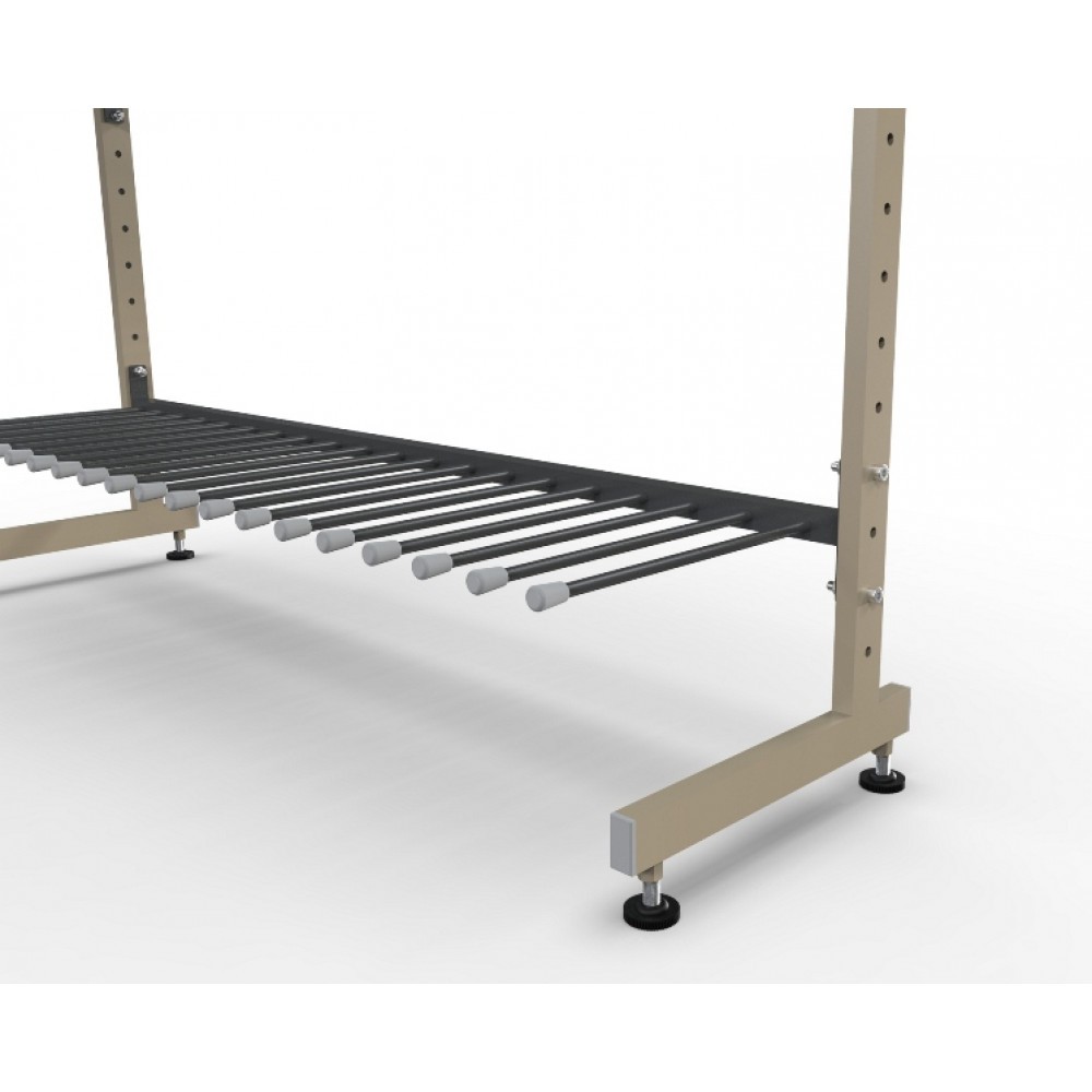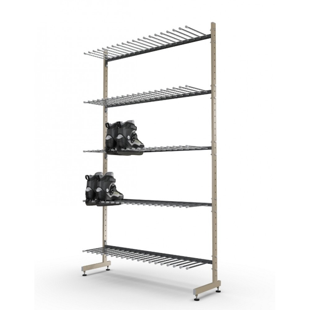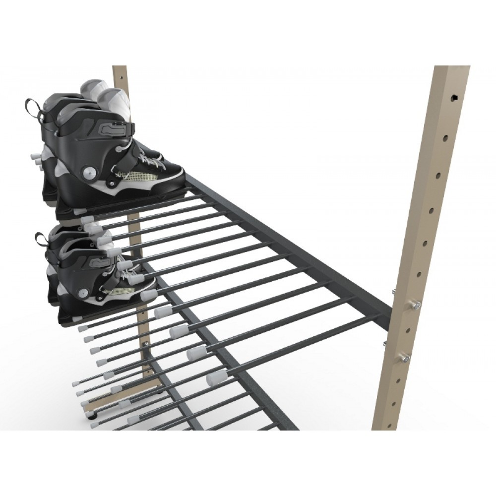 Конструкция стеллажа для коньков легка в сборке, имеет малые габариты для транспортировки. Оборудование для хранения коньков эффективно экономит пространство, так же, благодаря данным стеллажам возможно размещение коньков по видам, размерам и другим параметрам.