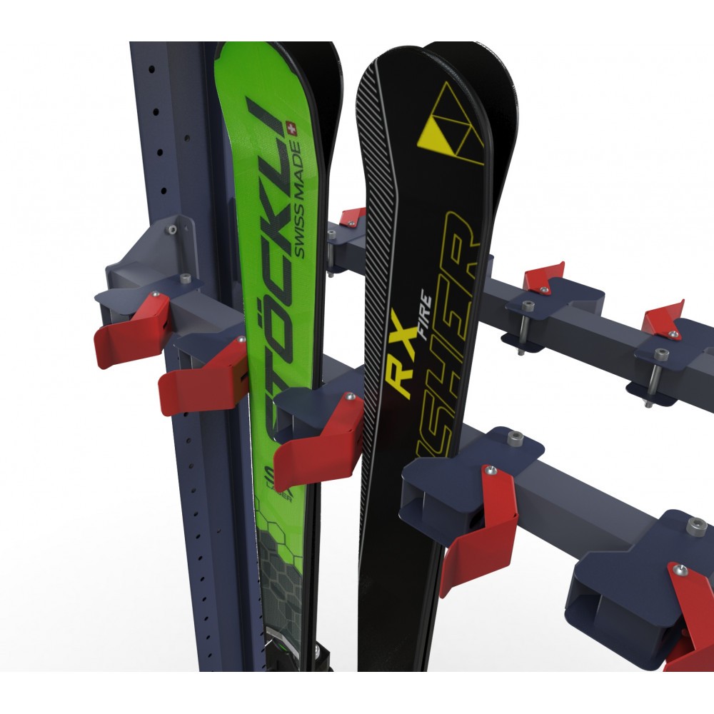 Горнолыжные стеллажи имеют сборно-разборную конструкцию. Конструктив данных стеллажей предусматривает регулировку горизонтальных держателей лыж с шагом в 5 см., благодаря данной регулировке возможна установка и хранение лыж различных видов, включая все горные и беговые, а также сноуборды. Дополнительно, каждый стеллаж оснащен механизмом ClipS для фиксации лыж.