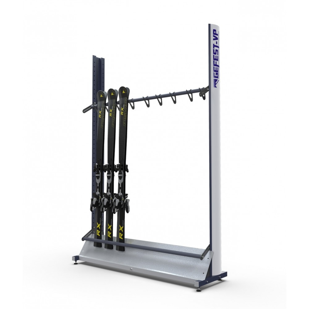 Горнолыжные стеллажи имеют сборно-разборную конструкцию. Конструктив данных стеллажей предусматривает регулировку горизонтальных держателей лыж с шагом в 5 см., благодаря данной регулировке возможна установка и хранение лыж различных видов, включая все горные и беговые, а также сноуборды.