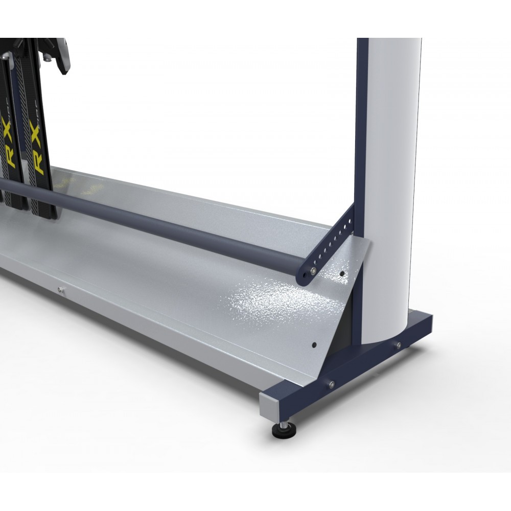 В базовой комплектации, стеллаж установлен на винтовые опоры. По желанию Заказчика стеллажи можно укомплектовать колесными опорами или поставить на рельсовую систему. При установке на роликовые опоры, стеллаж с оборудованием можно перемещать по салону проката или в комнату сервисного обслуживания инвентаря.