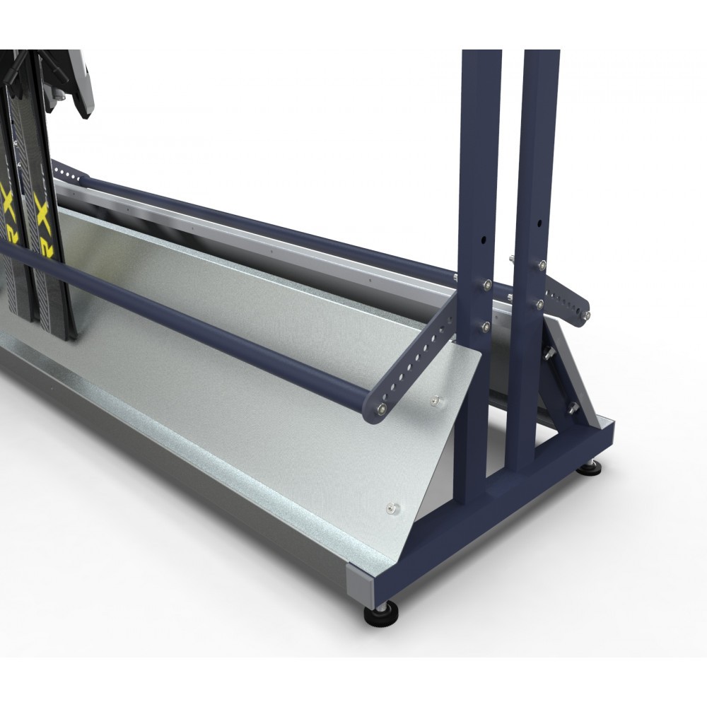 В базовой комплектации, стойка установлена на винтовые опоры. Для возможности передвижения, лыжную стойку можно установить на колесные опоры. Оборудование окрашивается полимерным порошковым покрытием с высокими защитными и декоративными свойствами. По желанию Заказчика, возможна покраска в любой цвет по палитре RAL. Возможно изготовление стойки по индивидуальным размерам Заказчика.