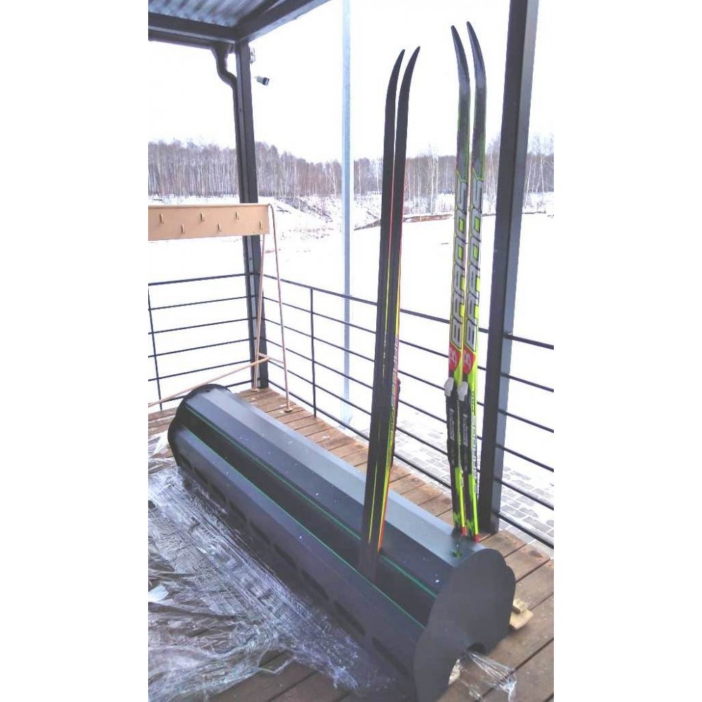 Надежная фиксация лыж в стеллаже.