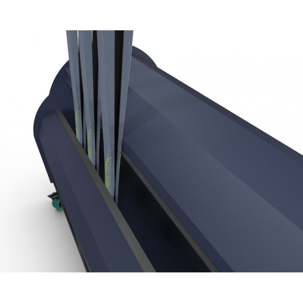 Размещение лыж в данной тумбе осуществляется следующим образом: пара лыж складывается скользящей поверхностью друг к другу и устанавливается в тумбу. Благодаря данному типу хранения, в тумбах возможно размещение беговых лыж различных форм, типов и размеров, так же в одной тумбе возможно хранение как взрослых, так и подростковых, детских лыж от 100 до 210 см.