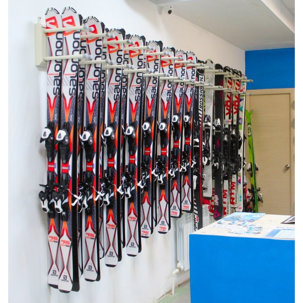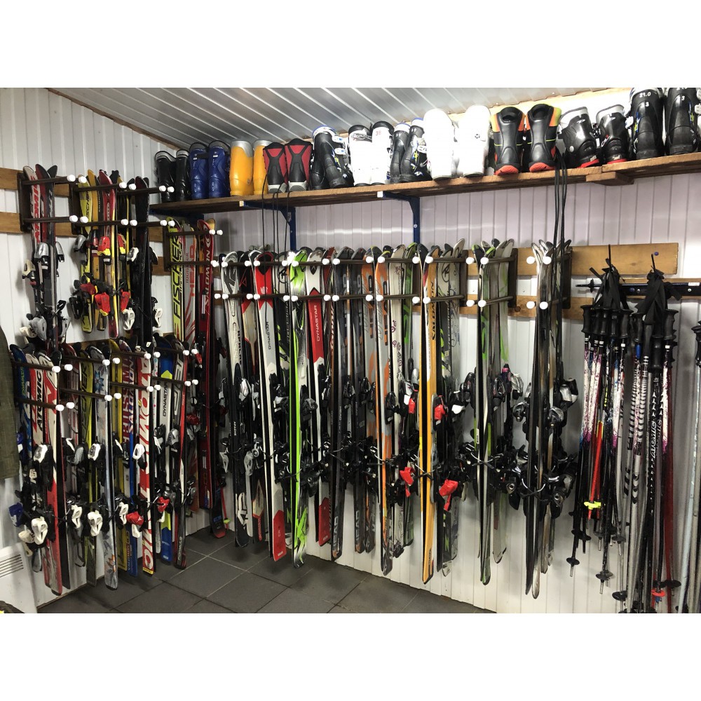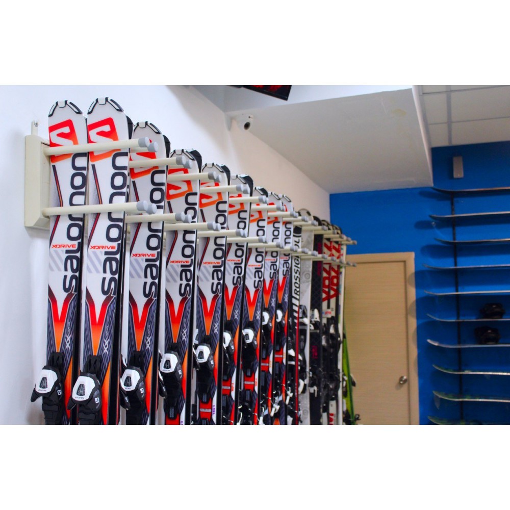 Данная вешалка используется как в крупных салонах проката, так и в лыжных комнатах и магазинах.