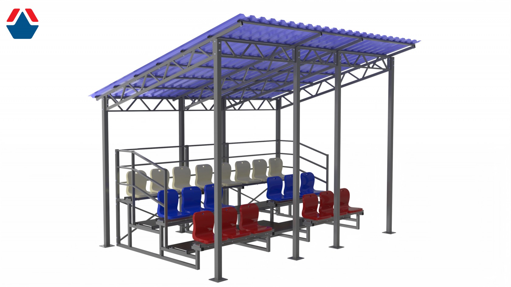 Трибуна сборно-разборная 3-х рядная на 20 мест (с навесом из профлиста) vasil-gym sportsman vasil