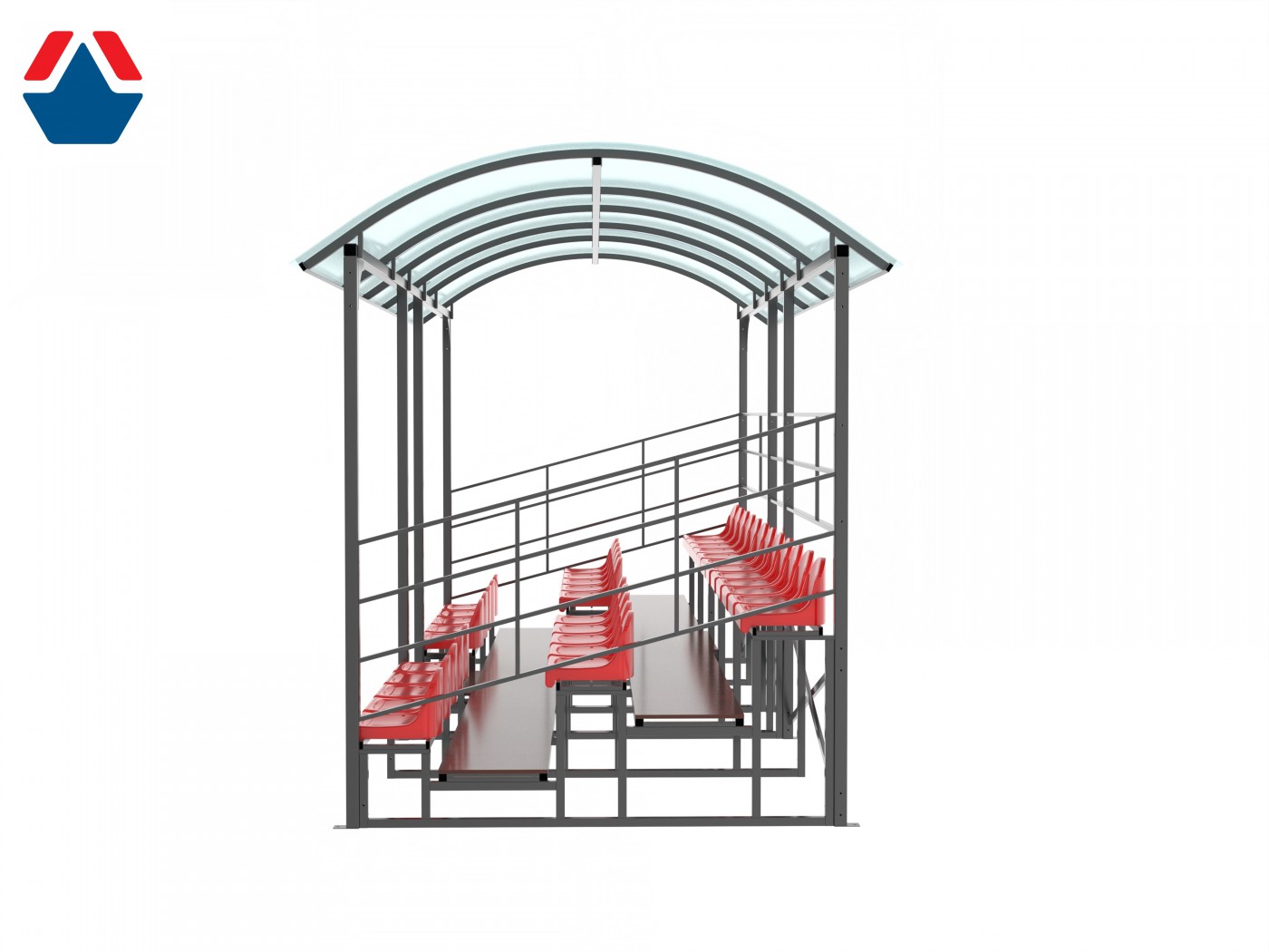 Трибуна сборно-разборная 3-х рядная на 32 места (с навесом из поликарбоната) sportsman vasil