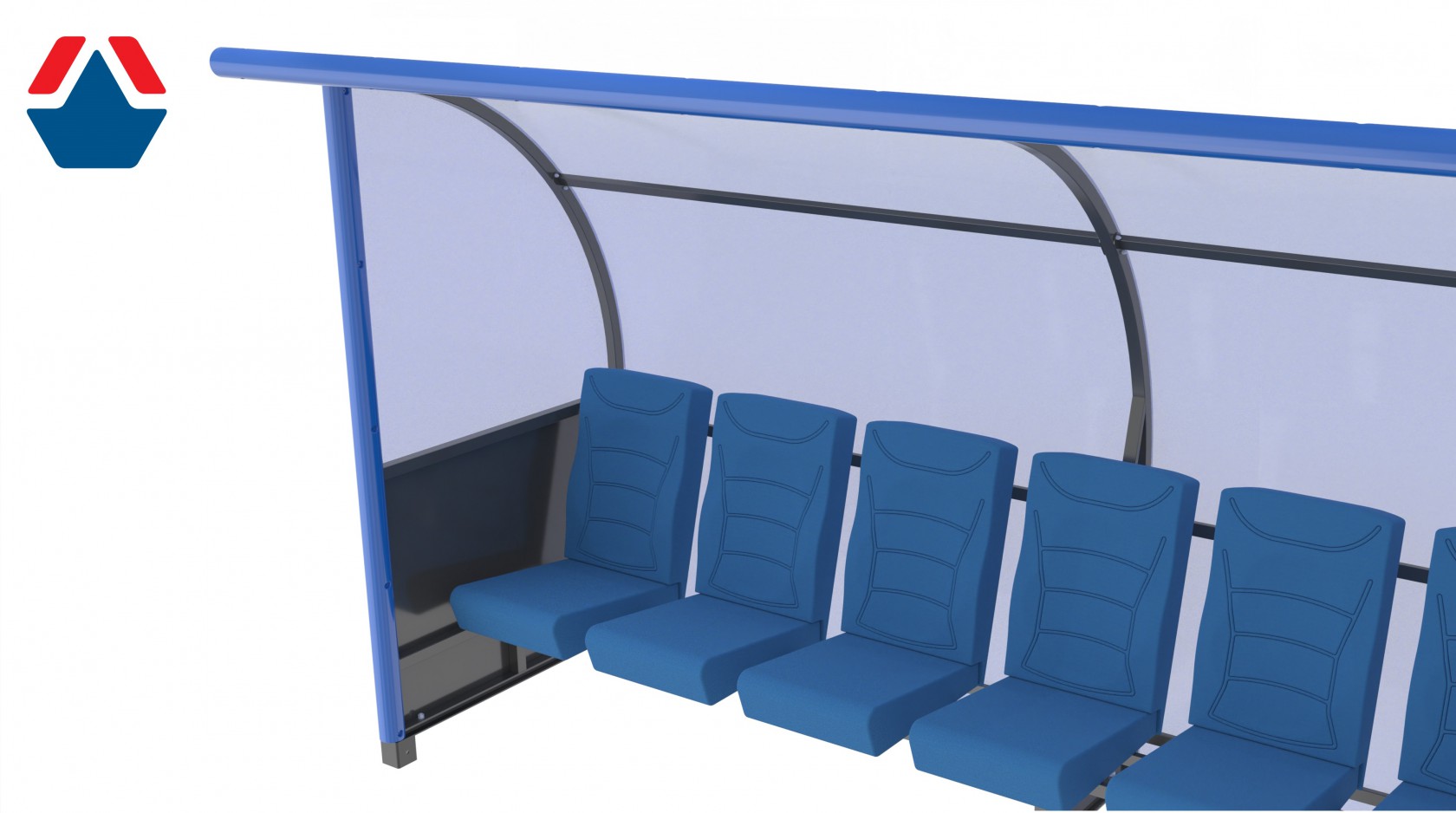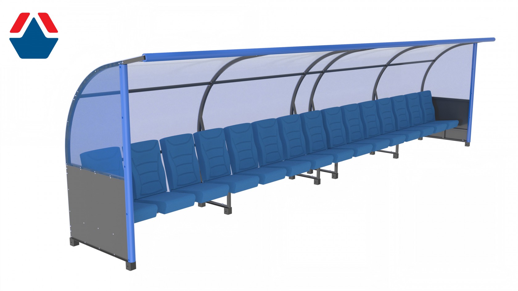 Скамейка для запасных игроков с навесом и протекторами (на 15 мест) sportsman vasil