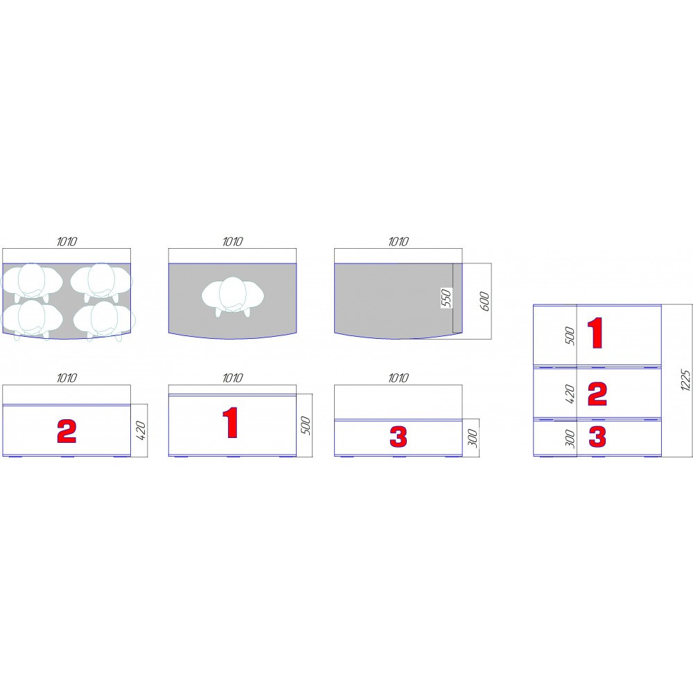2 место - 1010х600х420 мм,