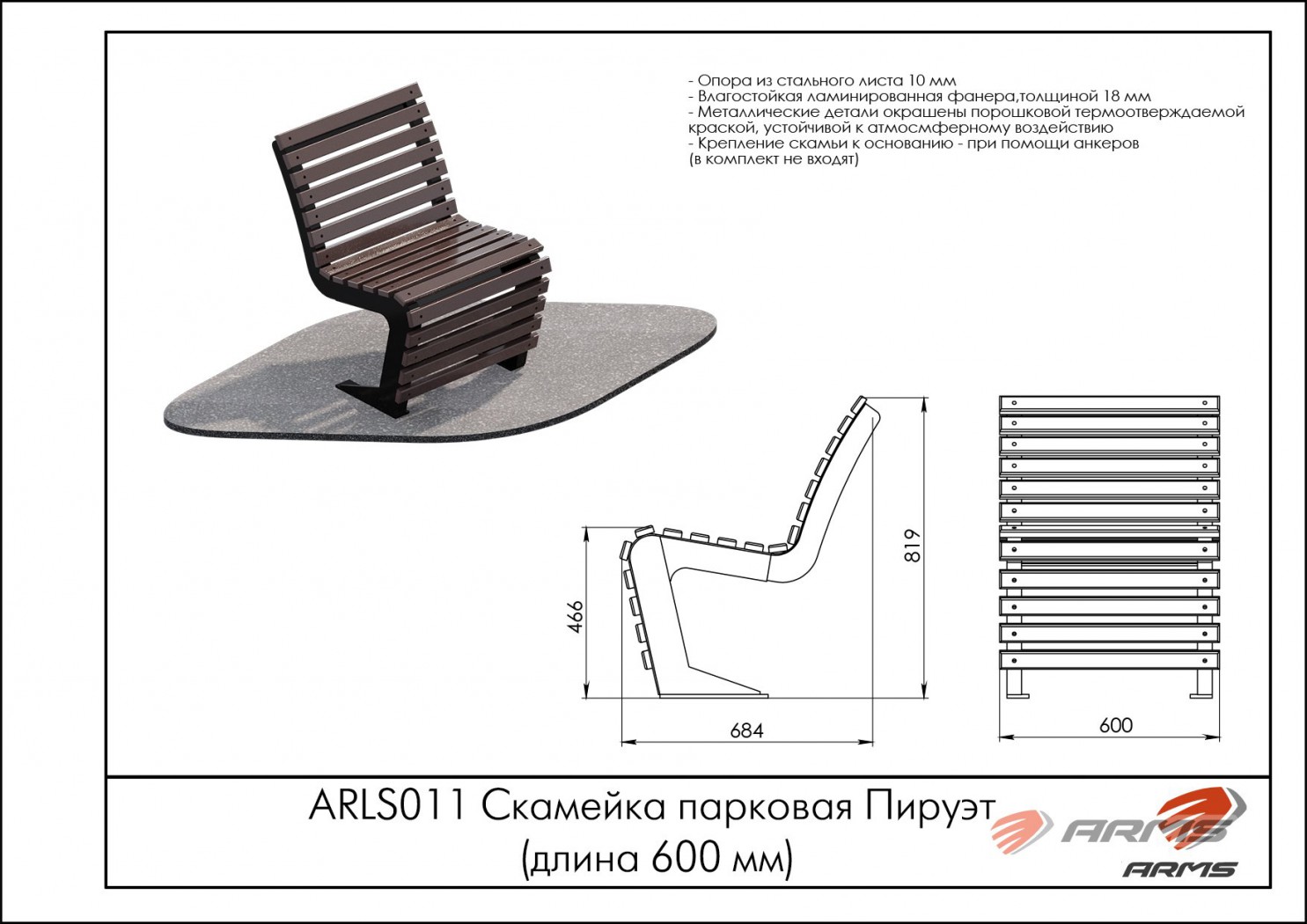 Скамейка парковая Пируэт (длина 600 мм) ARMS ARLS011 proven quality sportsman vasil