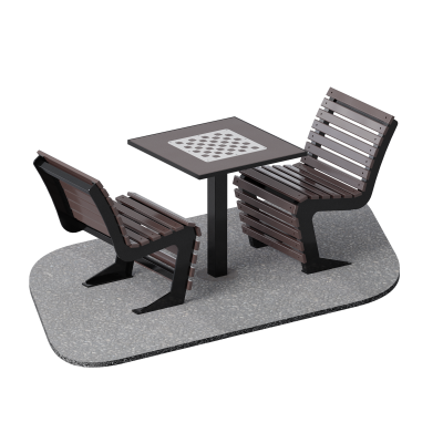 Комплект включает стол и две стационарные скамейки, что обеспечивает удобство размещения игроков и делает зону отдыха функциональной и завершённой. Решение ориентировано на создание комфортной среды для игры в шахматы, настольные игры и спокойного общения.