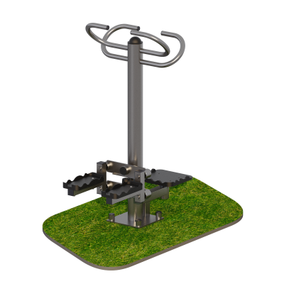 Конструкция позволяет заниматься одному или двум пользователям одновременно, что делает тренажёр удобным для установки в общественных пространствах с высокой проходимостью.