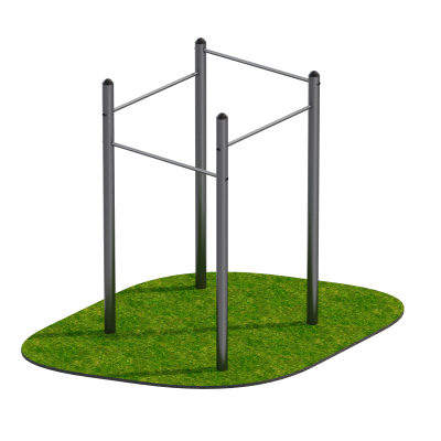Перекладины изготовлены из стальной трубы диаметром 34 мм и крепятся к стойкам в антивандальный стакан с защитой от выкручивания. Такое крепление гарантирует жёсткость соединений и устойчивость к механическим воздействиям при интенсивном использовании.