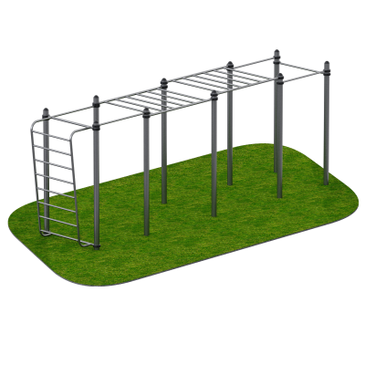 В состав комплекса входят турники, элементы шведской стенки и рукоходы, что позволяет выполнять широкий спектр упражнений с собственным весом. Пользователи могут выполнять подтягивания различными хватами, упражнения на пресс, статические удержания, перемещения по рукоходу, а также функциональные элементы на развитие координации и выносливости.