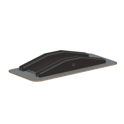 Заезд выполнен из металлического листа толщиной 3 мм, устойчивого к механическим повреждениям и интенсивной эксплуатации. Рабочие поверхности изготовлены из ламинированной влагостойкой фанеры толщиной 12 мм с противоскользящим тиснением. Боковые панели выполнены из ламинированной влагостойкой фанеры толщиной 6 мм.