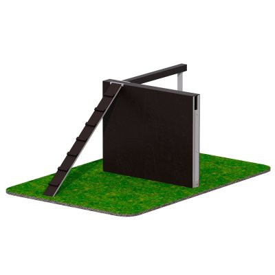 Модуль «Наклонная доска» представляет собой цельносварную металлическую раму с дощатым покрытием. Рабочая поверхность выполнена из ламинированной влагостойкой фанеры толщиной 12 мм с противоскользящим покрытием. Угол наклона составляет 40 градусов, что обеспечивает оптимальное сочетание сложности и безопасности. Поперечные упоры для ступни способствуют уверенной фиксации ног во время подъема.