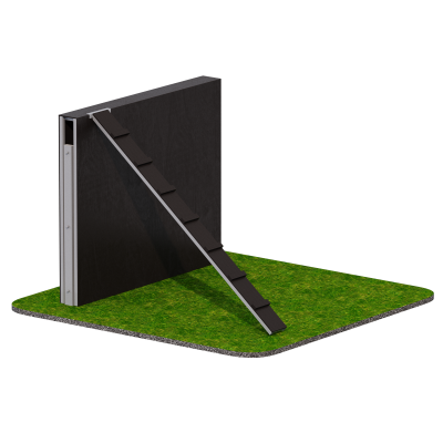 Модуль «Забор» представляет собой прочный стальной каркас, облицованный доской с двух сторон. Конструкция имитирует вертикальное препятствие и требует от участника правильной техники подъёма и спуска.
